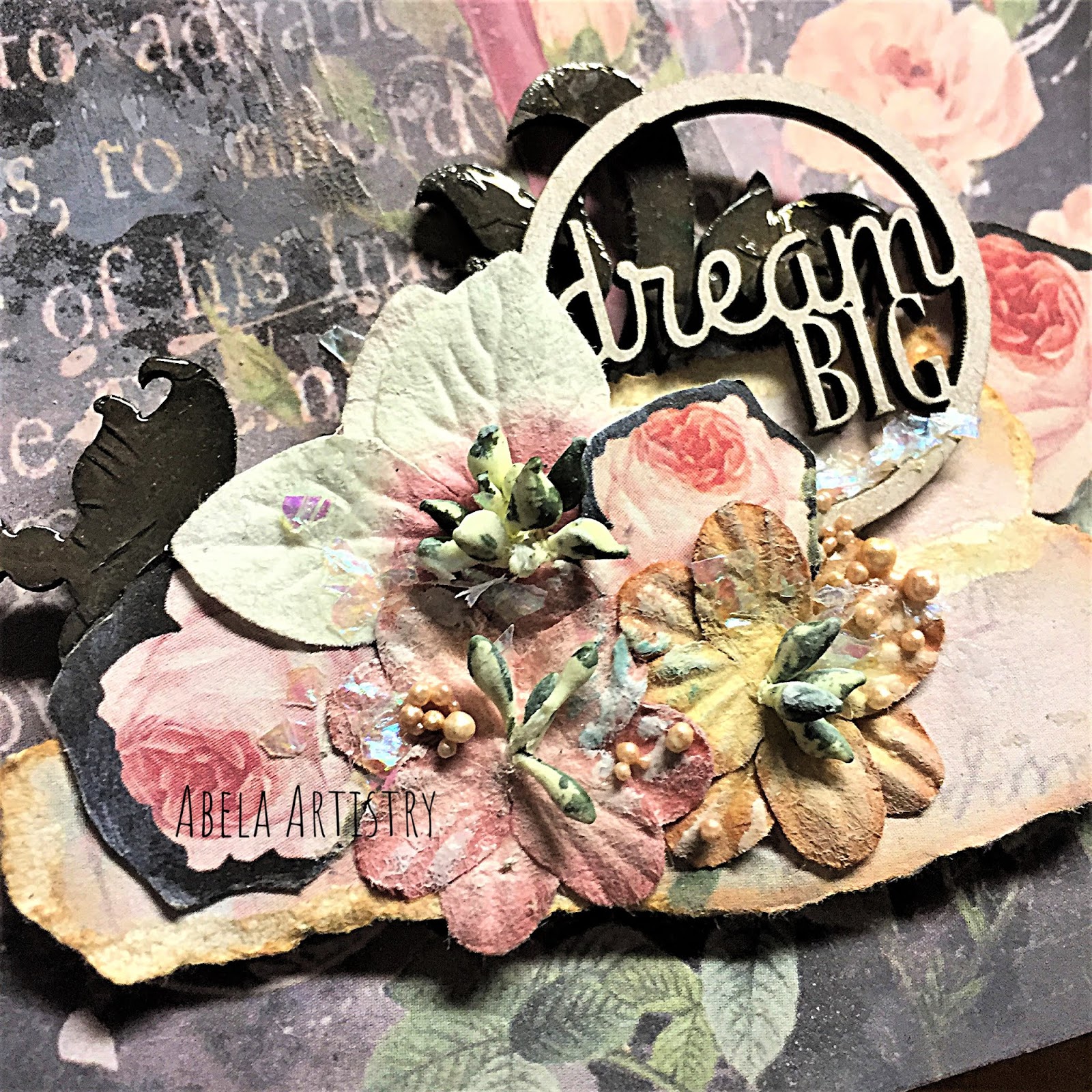 I used Metallic paint on this chippy. Its one of my favourites as I can wrap the curls around my collage pieces. I did that on the flower below.